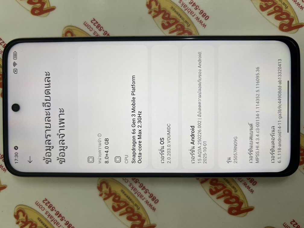 ประกาศขายโทรศัพท์มือถือสมาร์ทโฟนเป็นรุ่น Xiaomi Redmi 15 5G Ram8GB Rom256GB (ตัวท๊อป) จอ6.9นิ้ว สภาพสวย92% มีรอยขนแมวนิดหน่อยมองแทบไม่เห็นโดยรวมแล้วสวย สีTitan Gray อุปกรณ์ครบกล่องมี ตัวเครื่อง+หัวชาร์จ+สายชาร์จ+เข็ม+คู่มือ+เคส+กล่อง หน้าจอติดฟิล์มให้แล้วครับ ประกันหมดวันที่ 18 พฤศจิกายน 2569