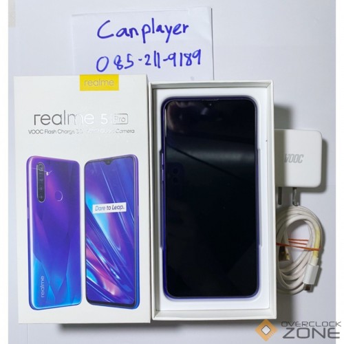 อุปกรณ์ :Realme 5Pro สำน้ำเงิน Ram4 Rom128 สายชาร์จแท้ Adapter แท้ คู่มือเข็มจิ้มซิม