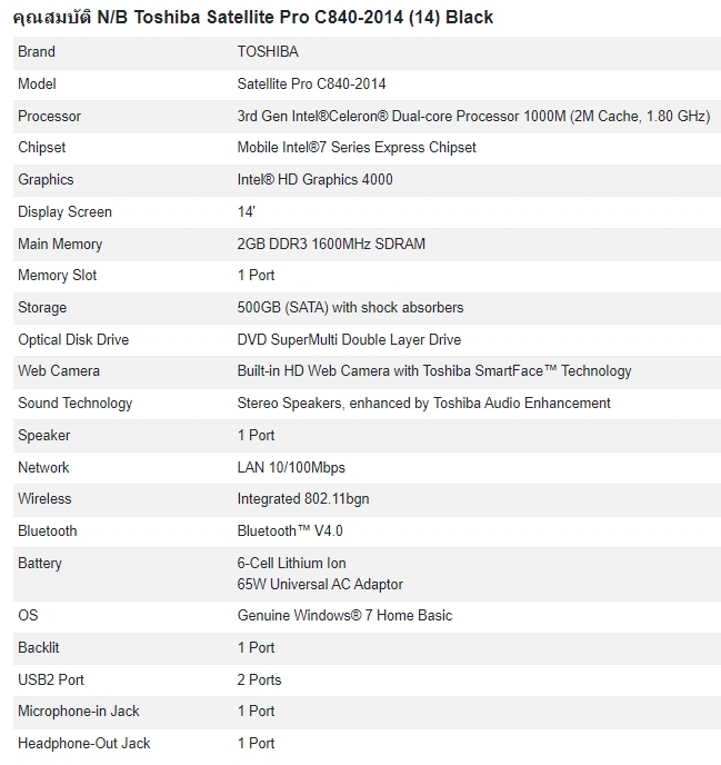 ขาย Notebook Toshiba Satellite Pro C840 ราคา 1,490 บาท