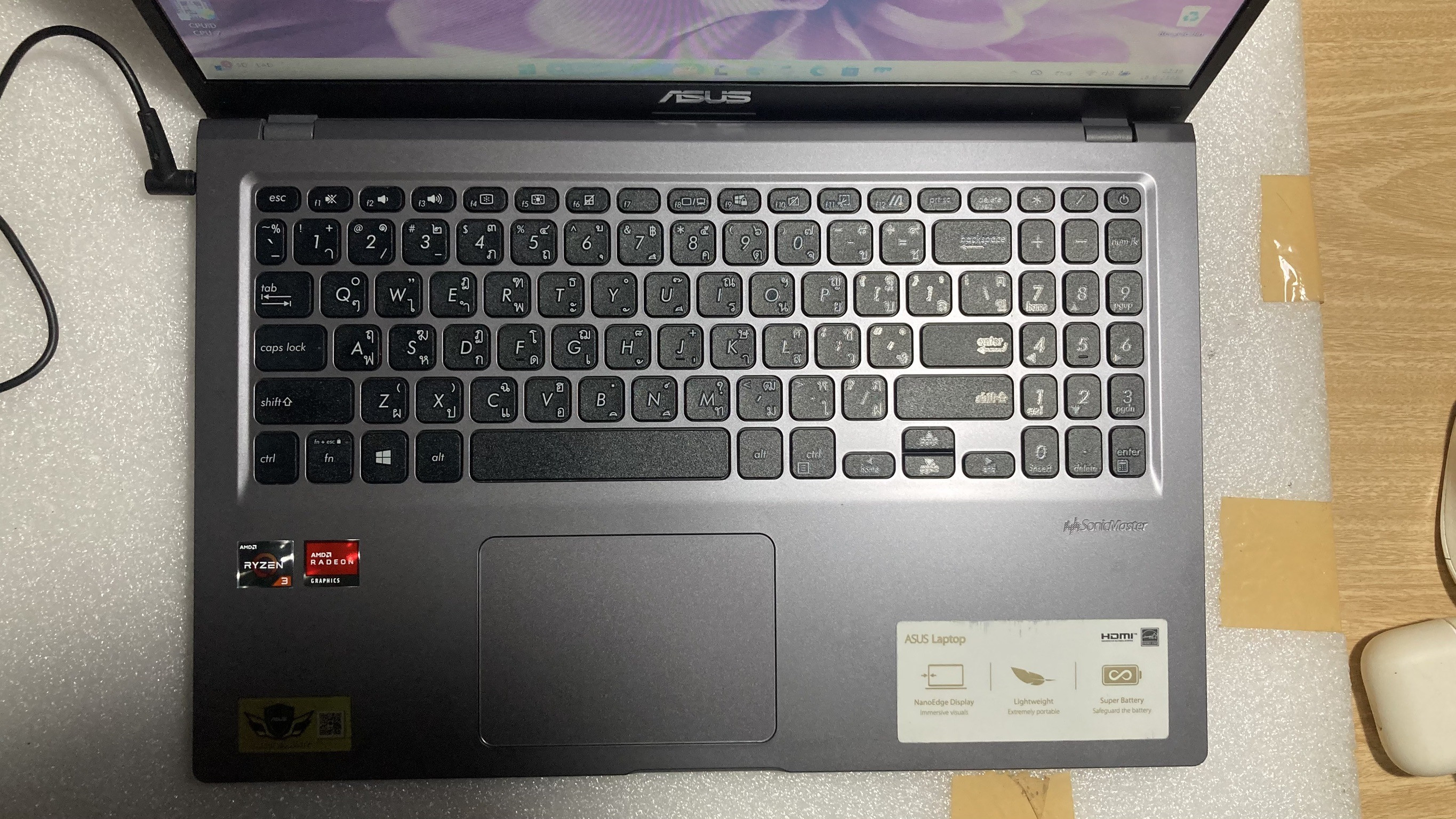 ตำหนิมีรอยขนแมวตามการใช้งานและรอยคีย์บอร์ดที่หน้าจอจางๆ