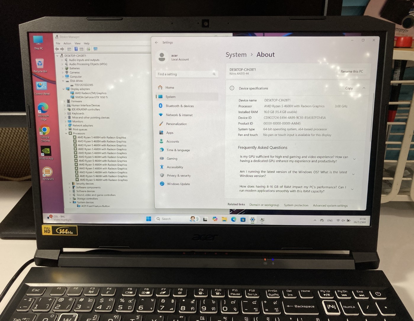 • CPU : AMD Ryzen 5 4600H (6 Cores 12 Threads)