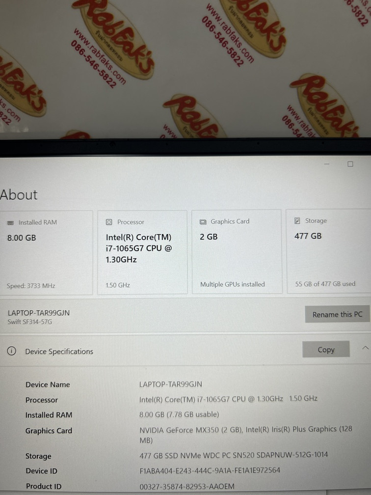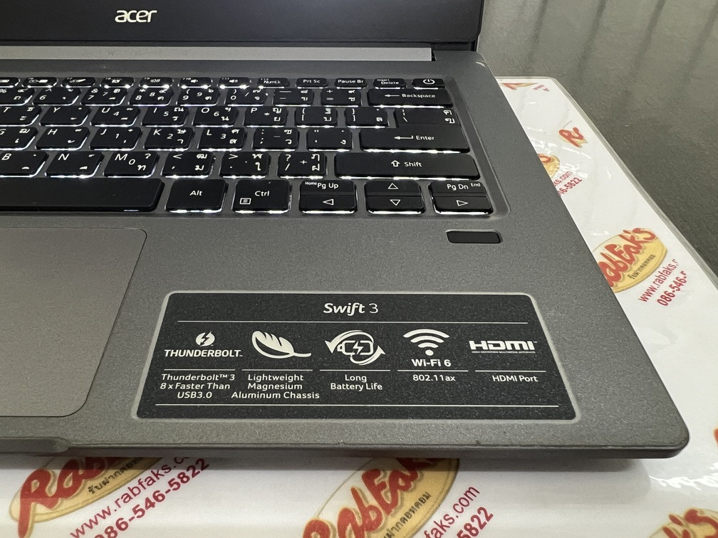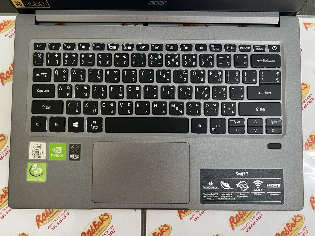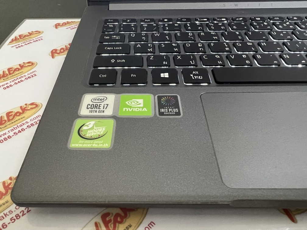 ประกาศขายโน๊ตบุ๊คเป็นรุ่น Acer Swift SF314-57G-70PD สเปค CPU Intel Core i7-1065G7/NVIDIA GeForce MX 350 2GB/RAM8GB/SSD512GB จอ14นิ้ว Full HD (1920×1080) คีร์บอร์ดมีไฟ เครื่องสีGray สภาพสวย92% อุปกรณ์มี ตัวเครื่อง+สายชาร์จ เครื่องติดฟิล์มทั้งbody+หน้าจอให้แล้วครับ ประกันหมดแล้วแต่ใช้งานได้100%