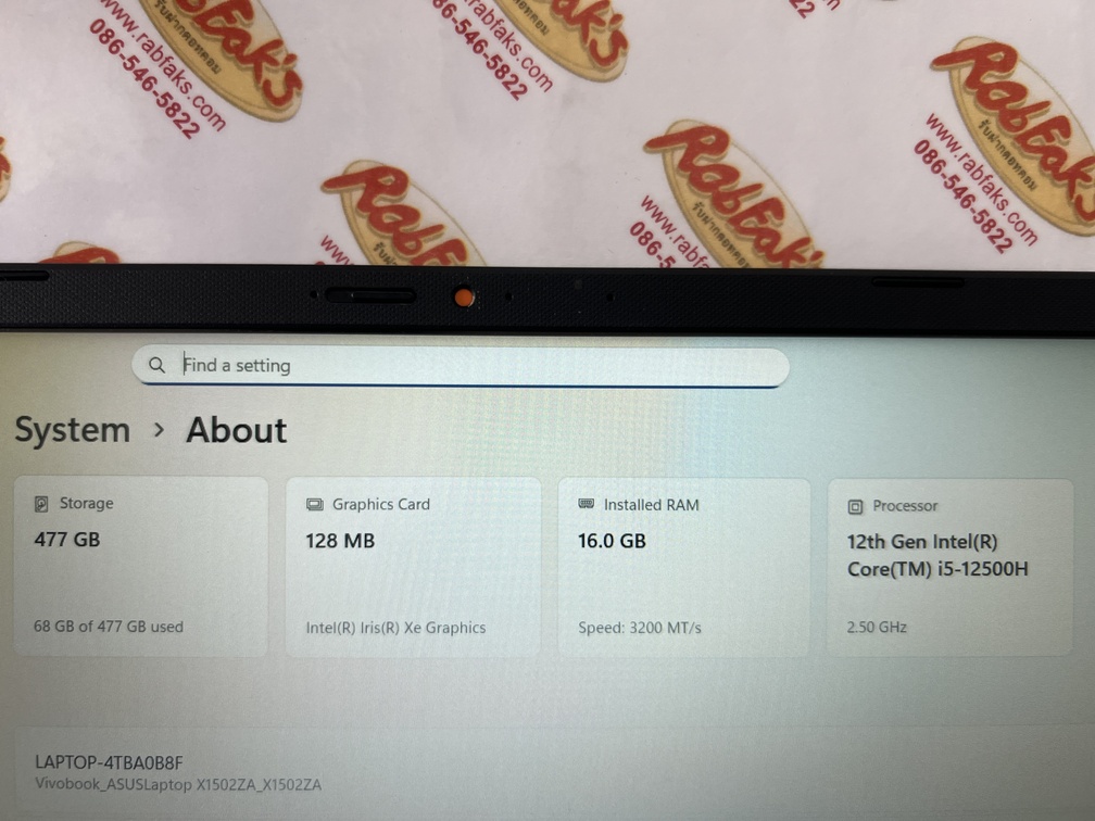 ประกาศขายสเปคแรงๆเป็นรุ่น ASUS VivoBook 15 X1502ZA-EJ2531WF CPU Intel Core i5-12500H/RAM16GB/SSD512GB จอ15.6นิ้ว (1920×1080) Full HD เครื่องสีQuiet Blue สภาพสวย93% อุปกรณ์มี ตัวเครื่อง+สายชาร์จ รีเซ็ตWindowsให้ใหม่แล้วพร้อมใช้งานได้ทันที ประกันยาวหมดวันที่ 30 พฤศจิกายน 2569