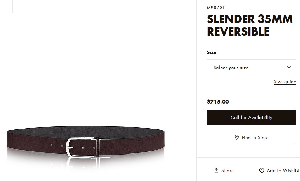12 เข็มขัด Louis Vuitton Slender Reversible belt sz 85 34 sาคา 4,900