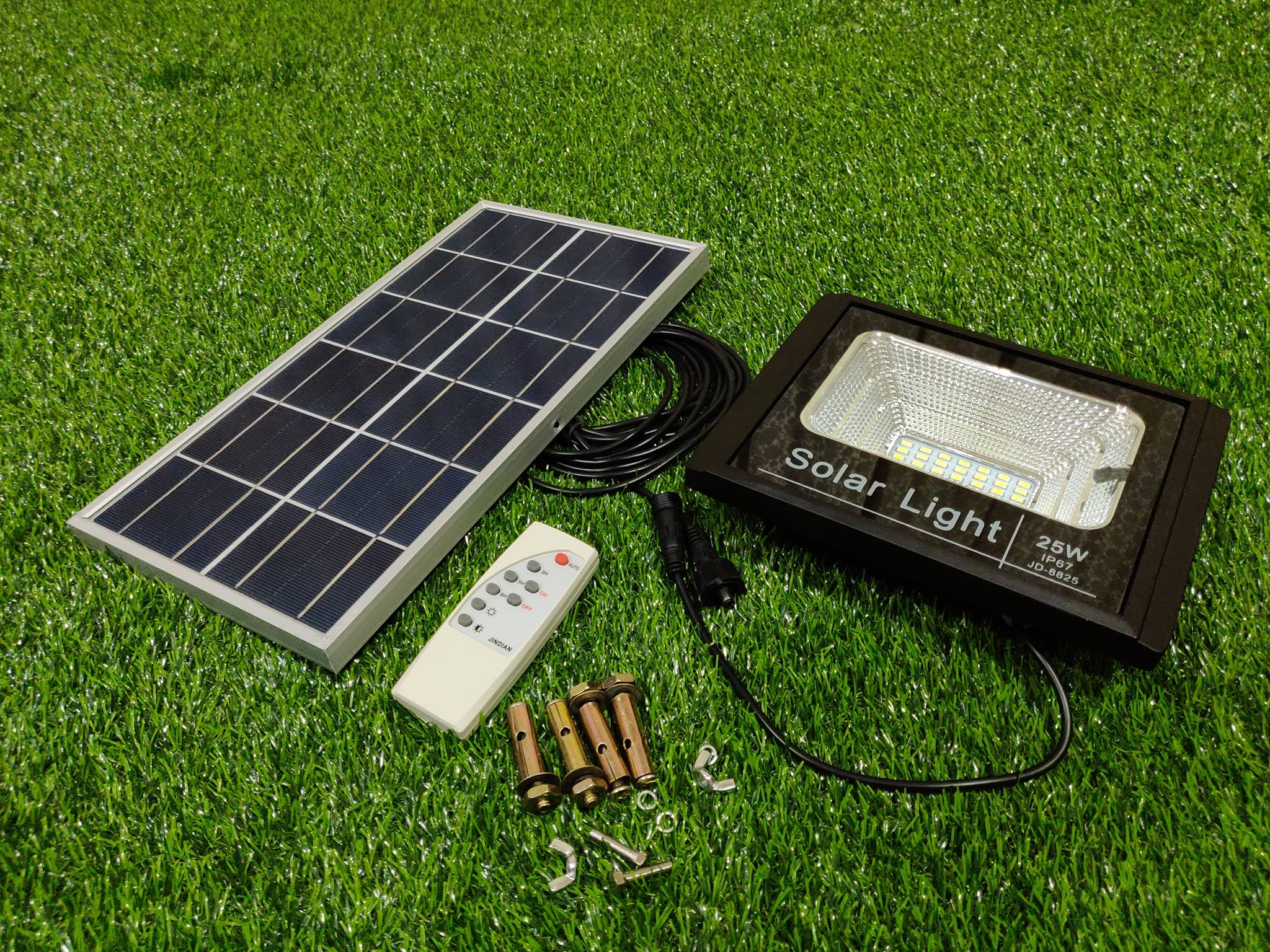 ไฟสปอร์ตไลท์ พลังงานแสงอาทิตย์ แผงโพลีคริสตันไลน์ อายุการใช้งาน 15 - 20 ปี โคมไฟสปอร์ตไลท์แสงอาทิตย์เป็นชิปหลอดไป LED ให้ความสว่างสูง และกินไฟแบตเตอรี่น้อยมาก หน้าโคมปรับปรุงใหม่กว้างขึ้นกระจายแสงได้ดี กระจกโคมหนา 8 มิลลิเมตร เป็นกระจกนิรภัย โคมกันน้ำได้ 100%