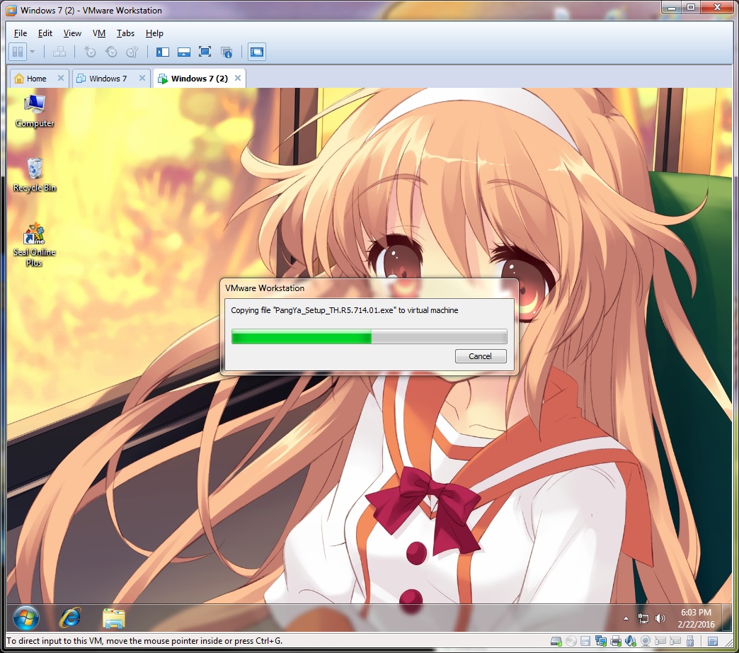 * จะลากจาก host (เครื่องจริง) ใส่หน้าต่าง vm (จำลอง) ก็ทำได้